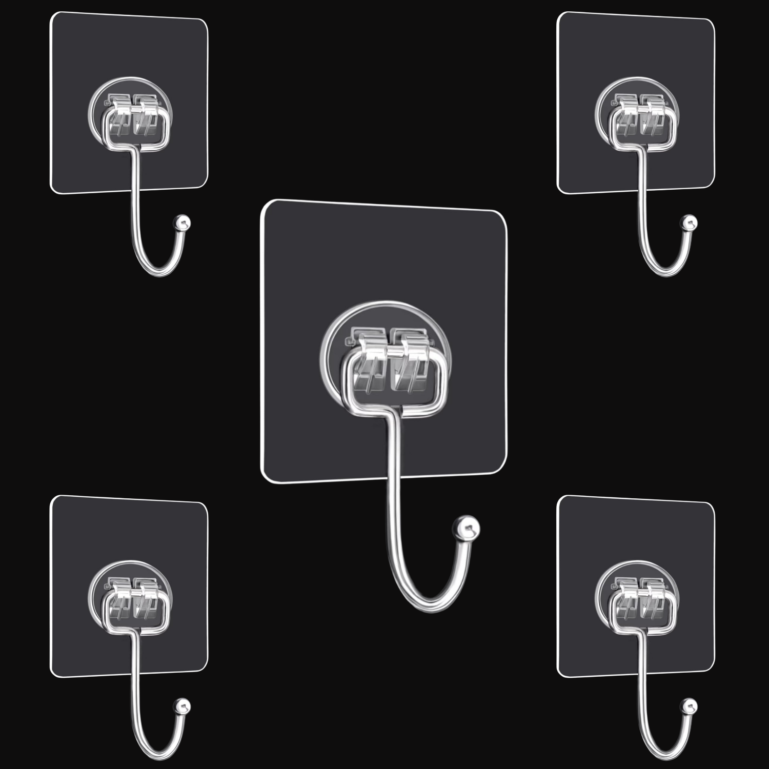 Self-Adhesive Stainless Steel Wall Hooks –Utility Hanging (Pack of 5)