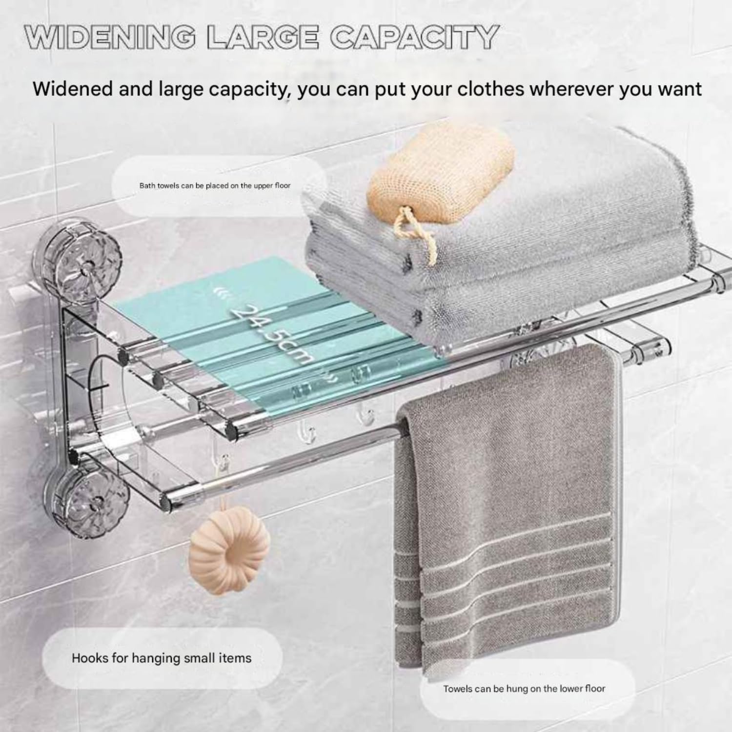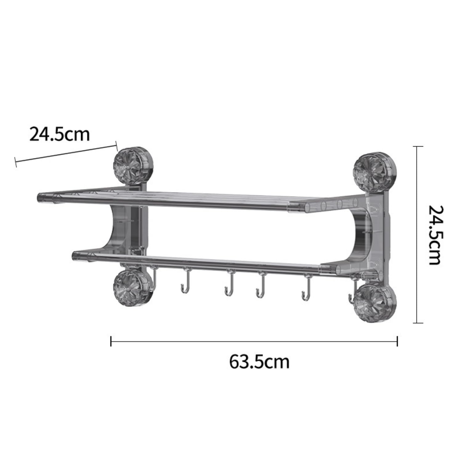 DIMENSIONS : Premium towel rack measuring 63.5 x 24.5 cm with double-bar design provides ample space for multiple towels and accessories